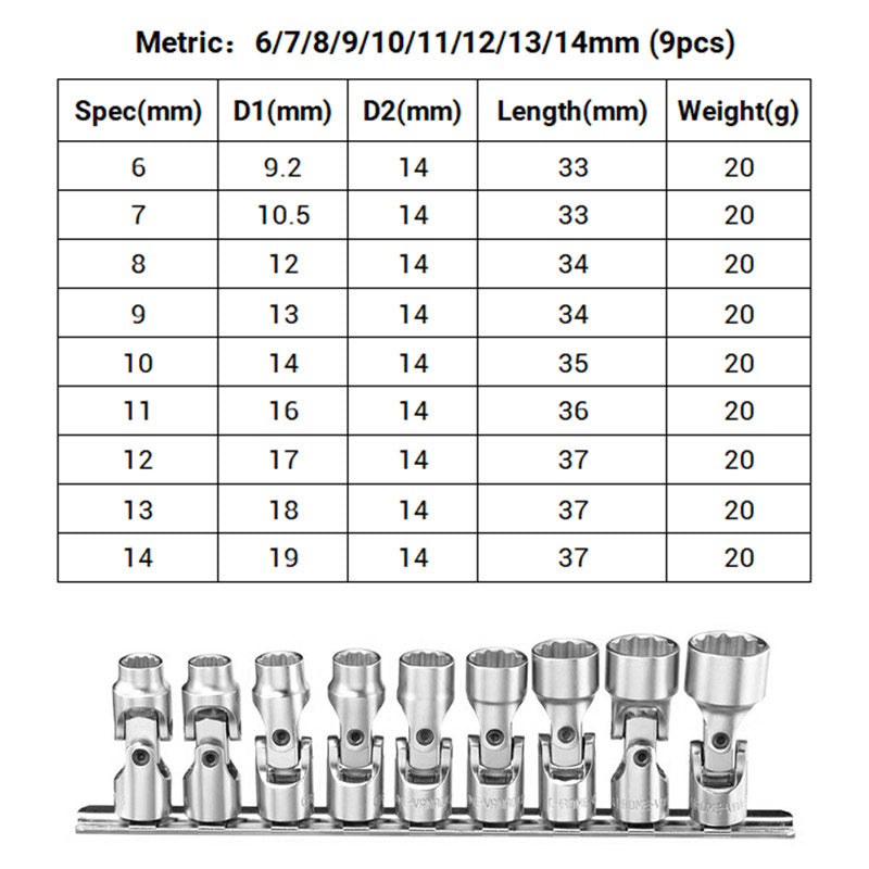 Metrisch: 6/7/8/9/10/11/12/13/14mm (9 Stück)