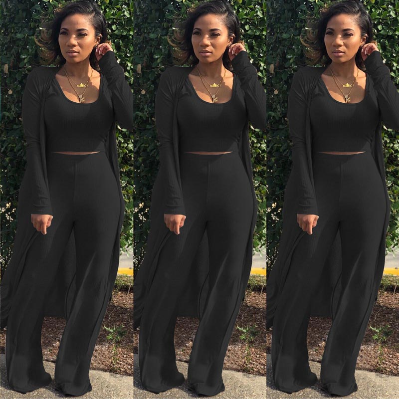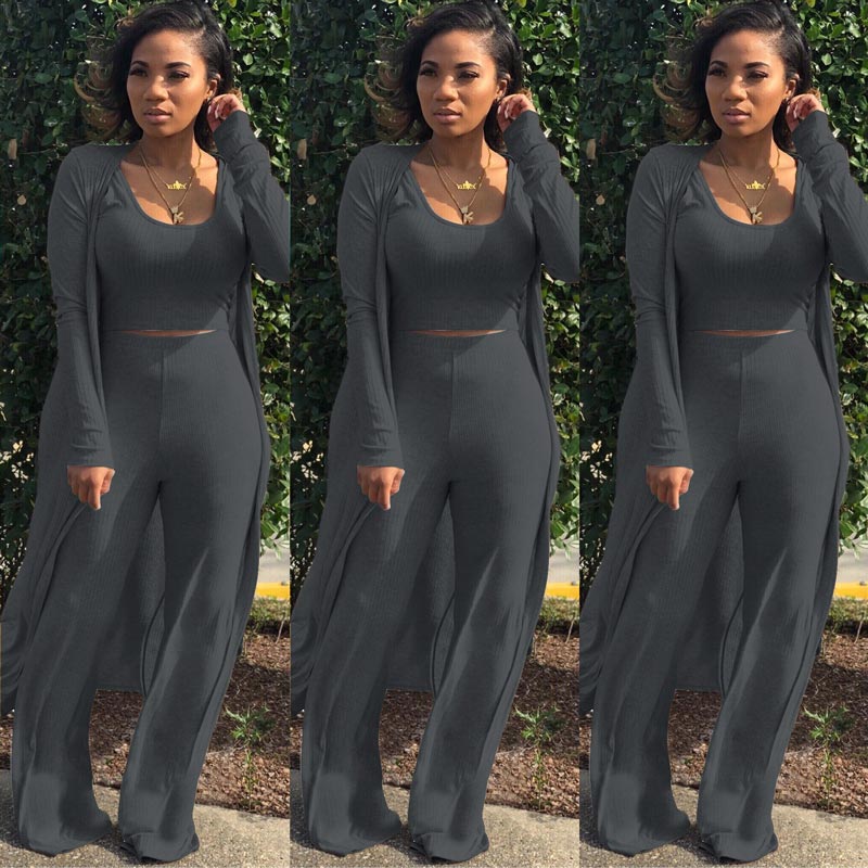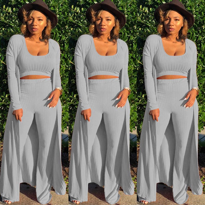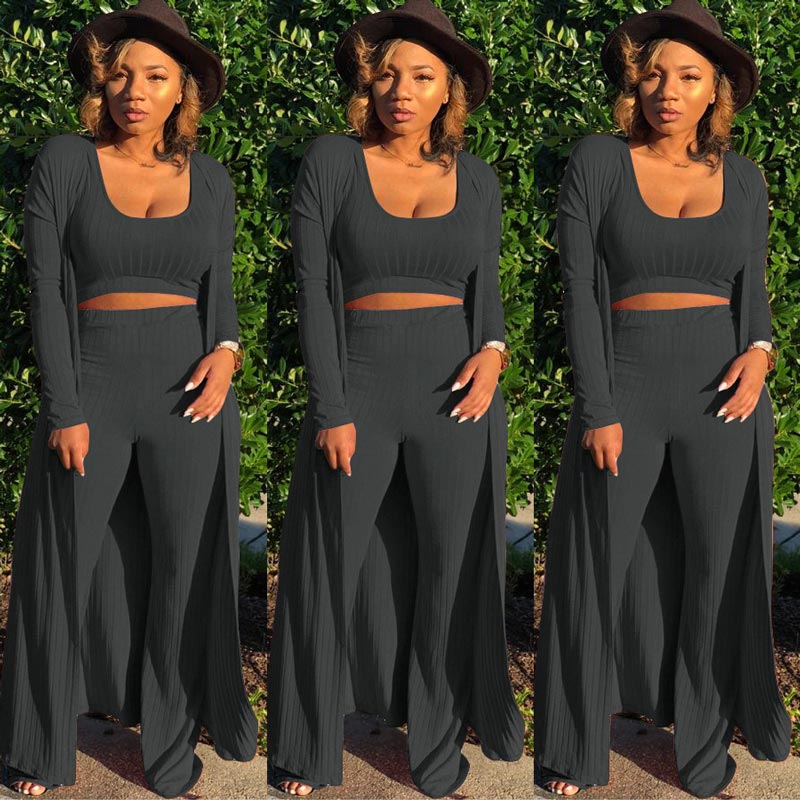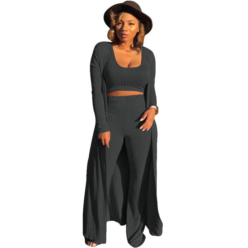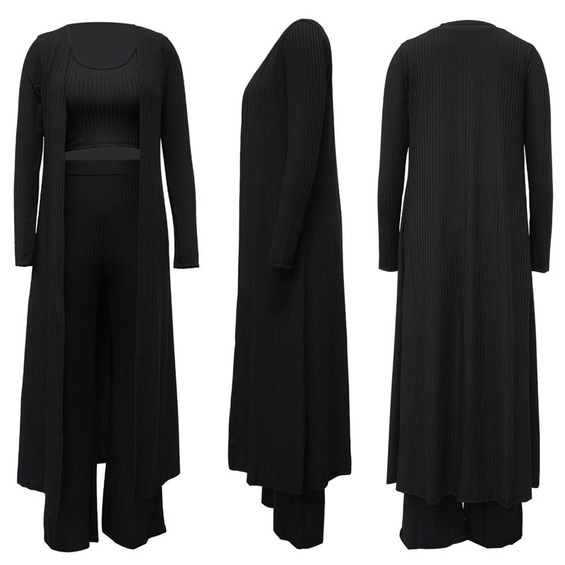 Gestricktes Stretch-Tanktop, Leggings mit hoher Taille und lange Strickjacke für Frauen, 3-teiliges Set