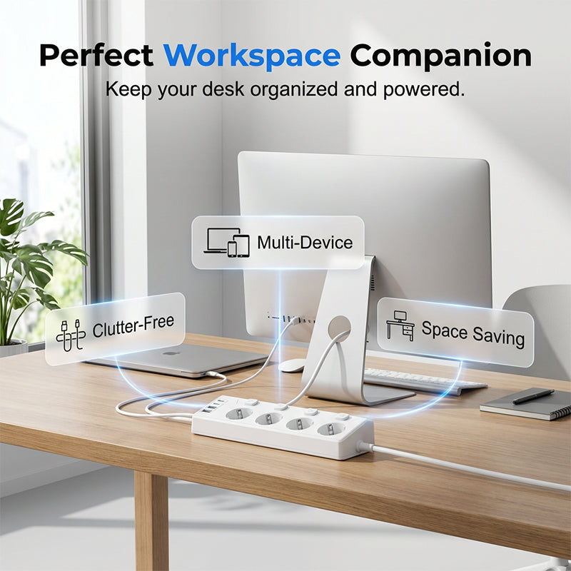 8-IN-1-LADESTATION – Zentralisieren Sie Ihre Ladevorgänge mit 4 Wechselstromsteckdosen, 2 USB-A-Anschlüssen und 2 USB-C-Anschlüssen. Dieser vielseitige Hub sorgt für Ordnung in Ihrem Umfeld, indem er mehrere Geräte gleichzeitig über eine einzige Quelle mit Strom versorgt.