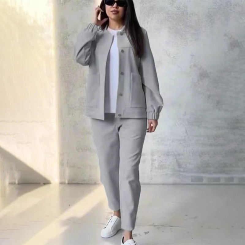 Lässiges Set aus Oberteil und Hose mit Knopfleiste🥰Kostenloser Versand