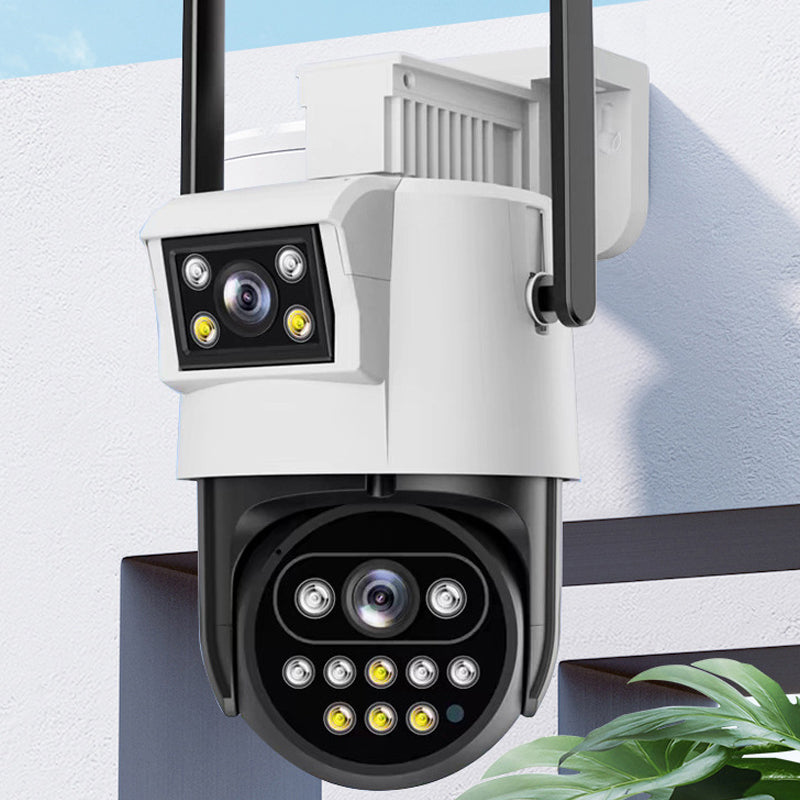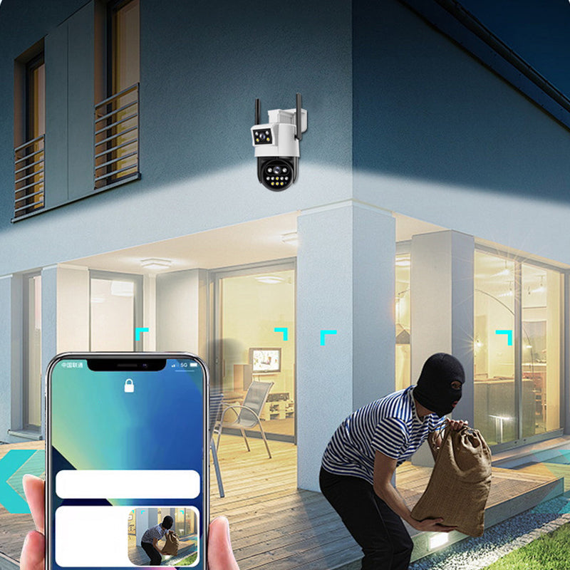 Überwachung mit zwei Kameras - Bietet einen breiteren, umfassenderen Blickwinkel und deckt damit effektiv den Bereich ab, den zwei separate Kameras abdecken würden. Dadurch werden tote Winkel vermieden, sodass Sie Ihr gesamtes Grundstück lückenlos überwachen können.