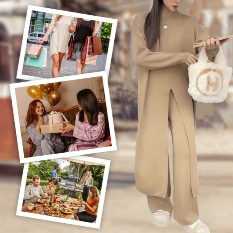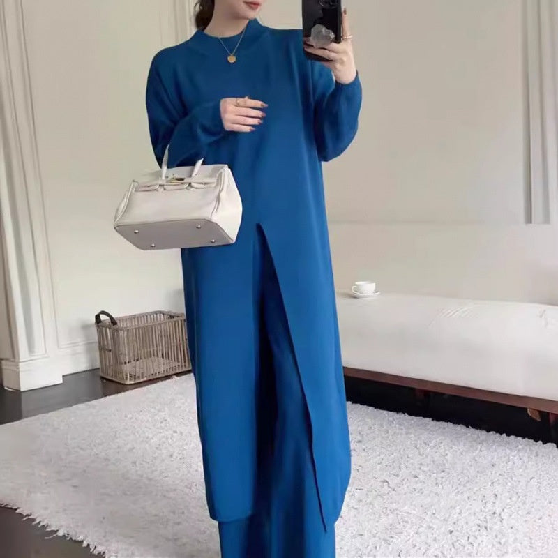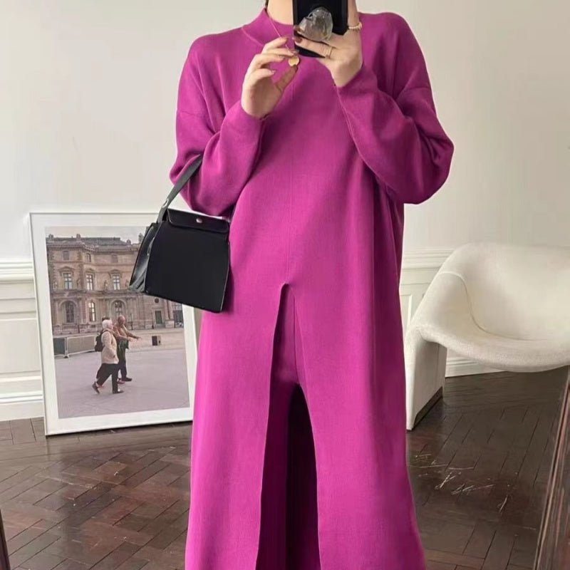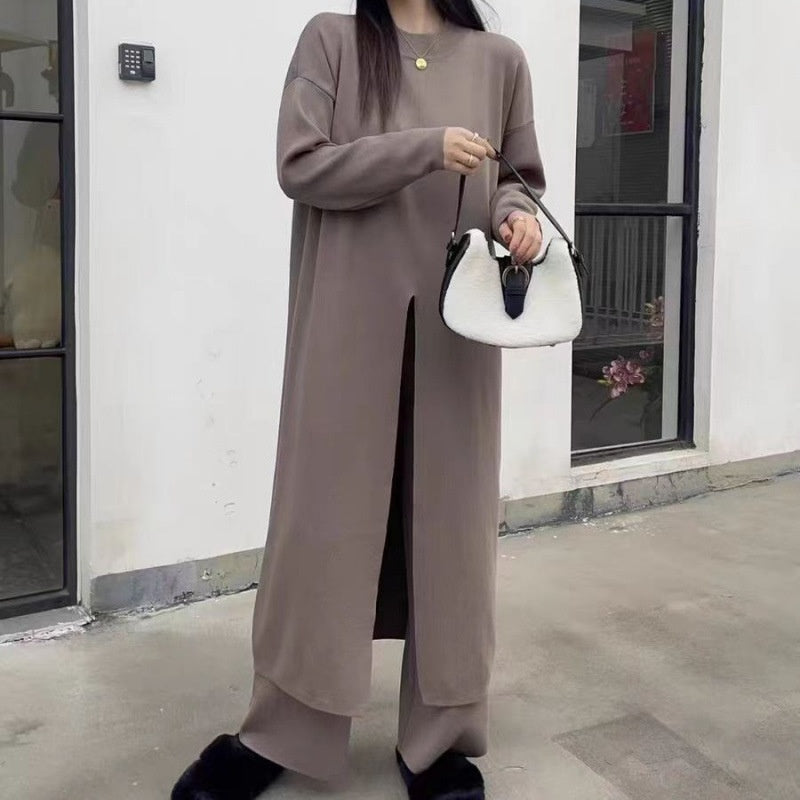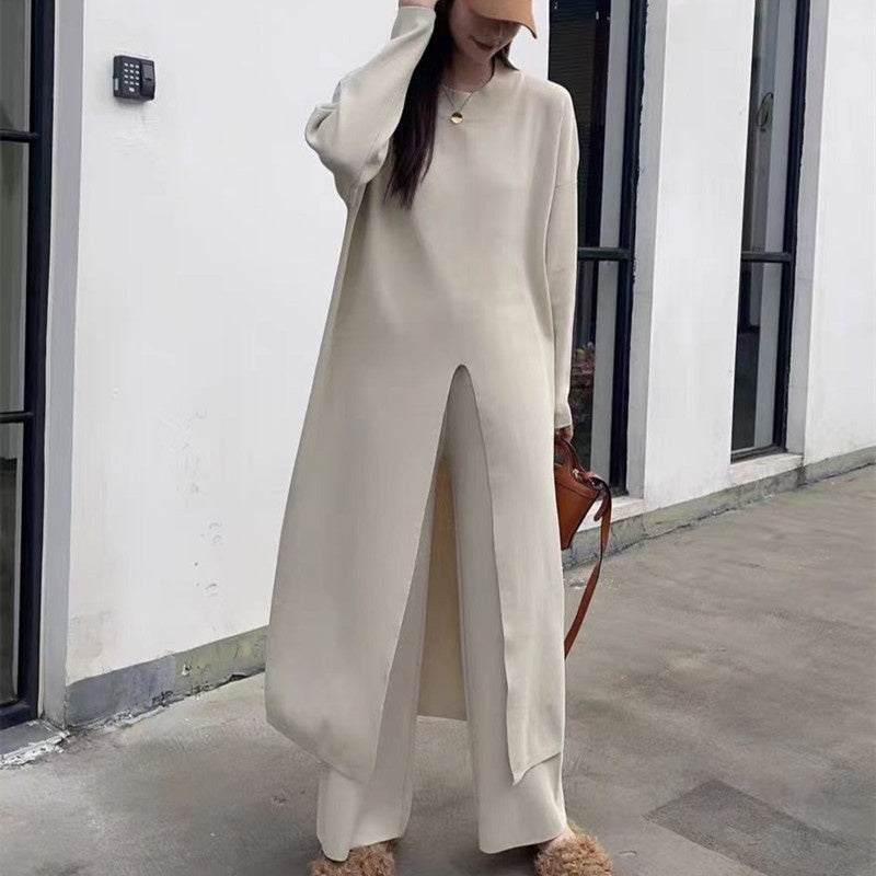 2-teiliges Set aus Strickoberteil mit Schlitz und langer Hose