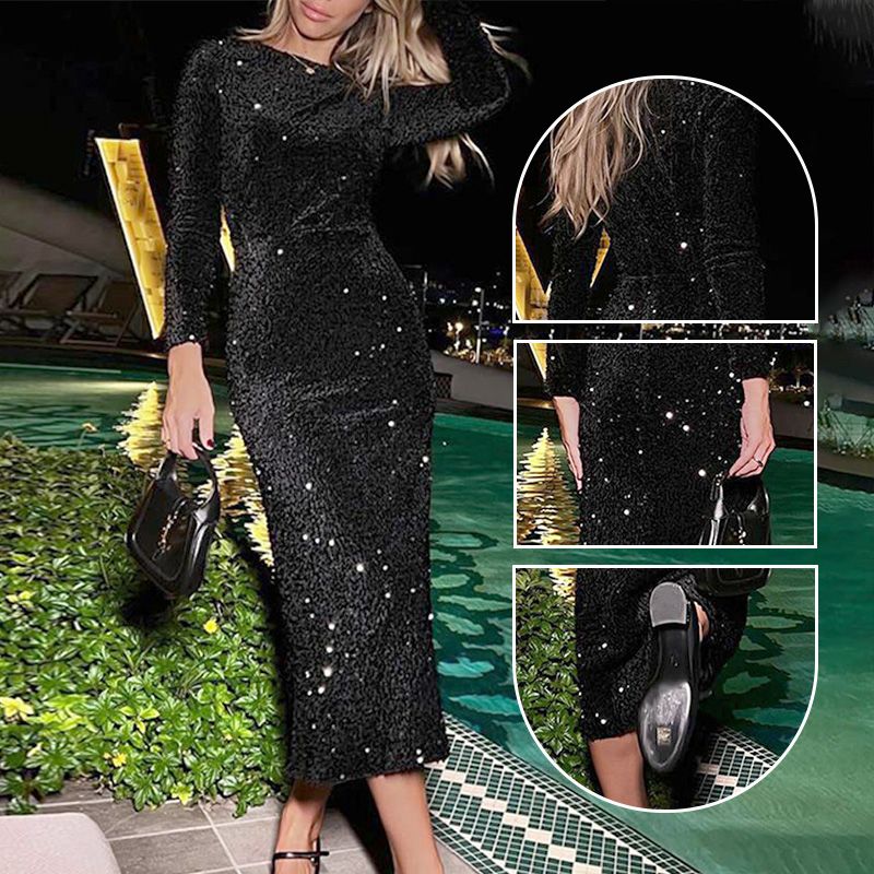 Funkelndes, elegantes, schmales Samtkleid für Damen