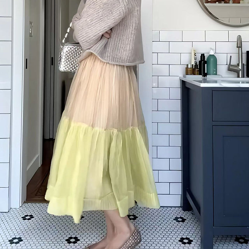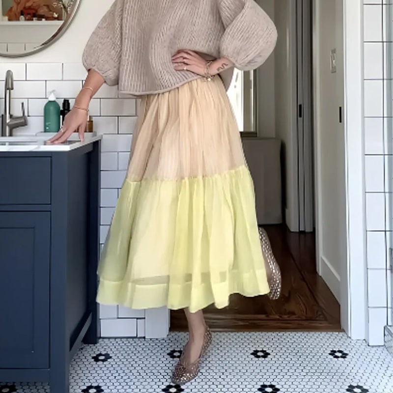 Elastischer Maxi-Stufenrock mit hoher Taille für Damen