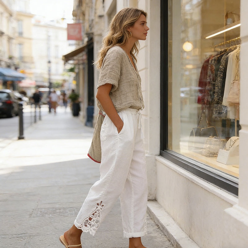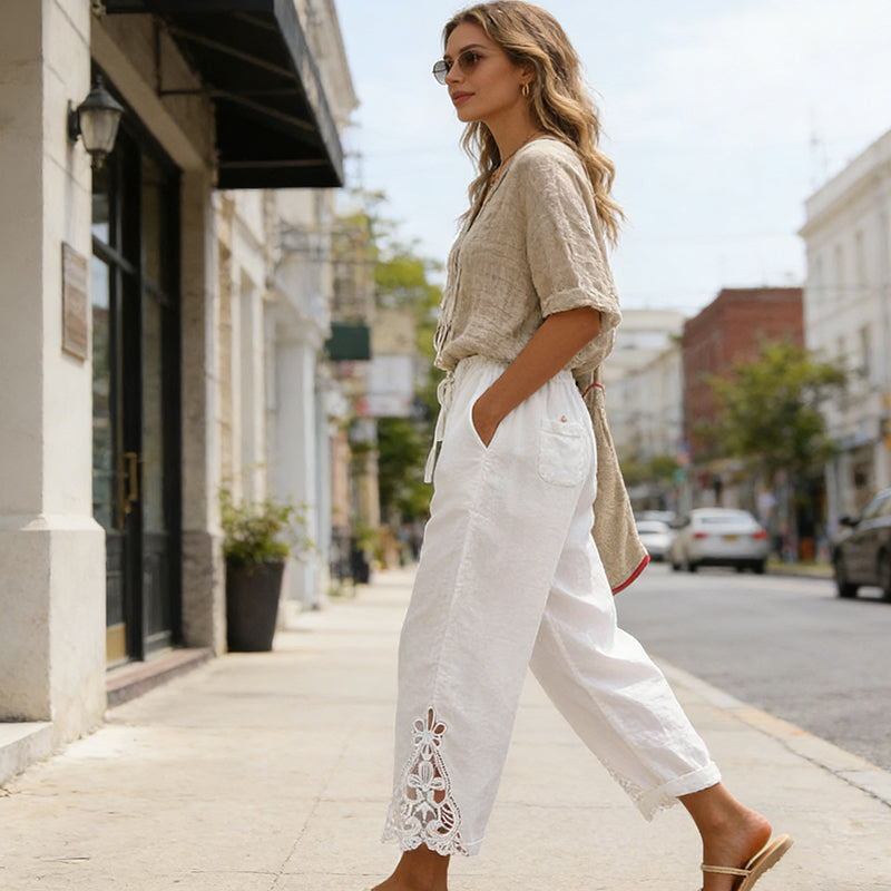 🥳2026 HEISSER VERKAUF🥳💞50 % Rabatt-ÜBER 50K+ VERKAUFT!✨🔥Damenhose mit Spitzenbesatz und Kordelzug