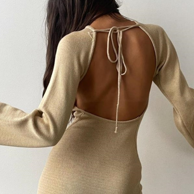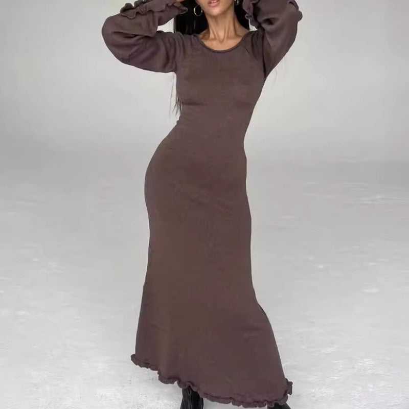 Solide rückenfreie langärmelige Maxikleider für Frauen