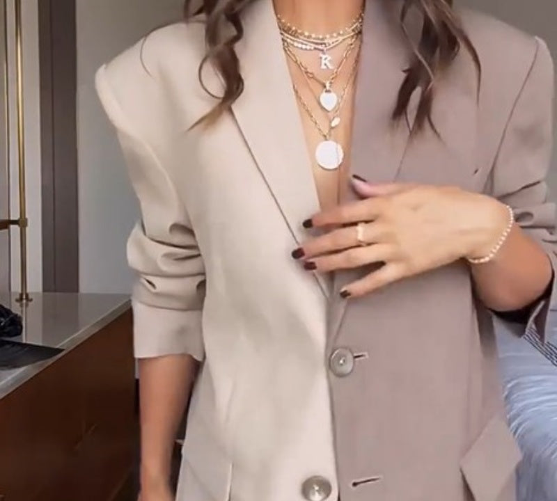🎊Weihnachtsverkauf - 44 % Rabatt🎊Zweifarbiger, locker sitzender Anzug für Damen